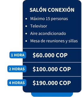 *Los espacios grupales están disponibles para reservar de lunes a viernes de 8:00 a.m. a 7:00 p.m. y los sábados de 8:00 a.m. a 4:00 p.m.
